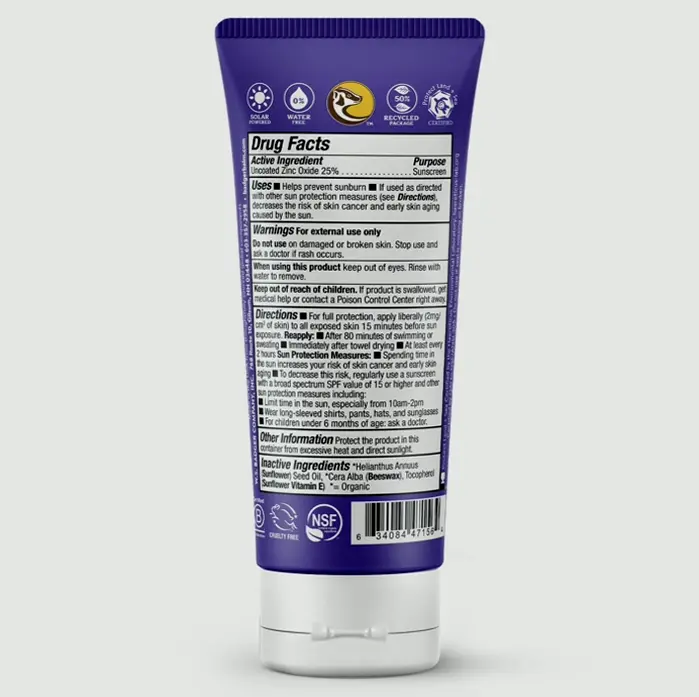 Safeguard your complexion with this natural zinc oxide sunscreen, offering broad-spectrum UVA/UVB protection. It is soft on sensitive skin, hypoallergenic, and non-comedogenic. Crafted from 4 moisturizing ingredients, this sunscreen provides 100% zinc oxide sun protection. It’s gluten-free and non-GMO. The sunflower-based formula spreads smoothly on face and body, ensuring 80 mins of water resistance. Ideal for travel, beach, and surfing. Free of oxybenzone and chemicals harmful to coral reefs, it is Mexican and Hawaii approved, biodegradable, and safe for you and reefs. Sustainably made with no synthetic ingredients, cruelty-free, and packaged in 50% recycled tubes. Produced using 100% solar power in the USA by a women-owned family company.