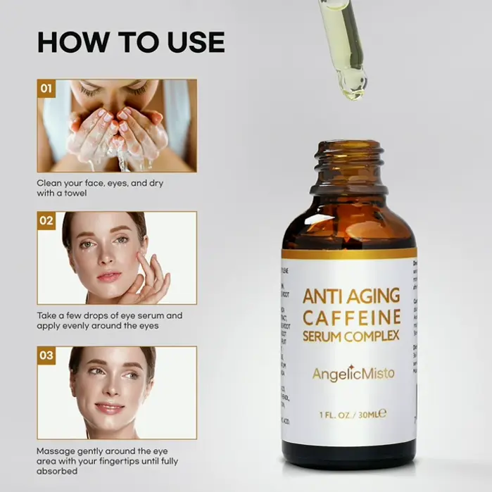 ✅SIMPLE AGE-DEFYING EYE TREATMENT – AngelicMisto anti-aging Caffeine eye cream visibly diminishes the look of dark under-eye rings, swelling, crow’s feet, tiny wrinkles, wrinkles, eye bags, and sagging eyelids, revealing a perfected, well-rested, and youthful glow. ✔MOISTURIZING & ENRICHING FORMULA – Featuring some of the most effective age-reducing components on the shelf such as Caffeine, Vitamin C, Vitamin E, Jojoba Oil, Matricaria Flower Extract, Sodium Hyaluronate, this caffeine eye cream profoundly penetrates the sensitive eye region to reduce puffy inflammation, tighten fine lines and wrinkles, and offer nourishing moisturization to the under-eyes and lids for an overall smoothed and refreshed look. ✔POWERFUL AGAINST PUFFINESS & DARK CIRCLES – The caffeine blend is highly effective for the under-eye area, keeping the skin around your eyes hydrated and nourished. Our age-defying Caffeine eye cream will wake your skin with a plentiful amount of antioxidants and important nutrients. ✔NON-GREASY AND SOOTHING – Our Caffeine Eye Cream under-eye serum applies smooth and doesn’t leave a sticky feeling. Pamper yourself and your skin with this Caffeine Eye cream. Effective and lightweight, you can effortlessly layer this tightening under-eye formula with other moisturizers and essences, making it the ideal under-eye formula for women. ✅REMOVES SHADOWY RINGS AND WRINKLES – In daily use, apply the Caffeine Eye Cream over puffiness and darkness usually linked with dark circles around the eye. Especially when also applied as a night eye treatment, it provides significant benefits. Skin looks rejuvenated with reduced lines and wrinkles, and less puffiness around the eyes.
